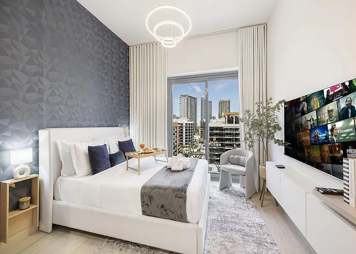 Livin' Holidays - Studio - Azizi Near Downtown Dubai is located 10 minutes' drive from Marasi Promenade and 4.3 km from the gargantuan Dubai Aquarium & Underwater Zoo. Wi-Fi and free private parking are provided for guests' business or leisure needs.